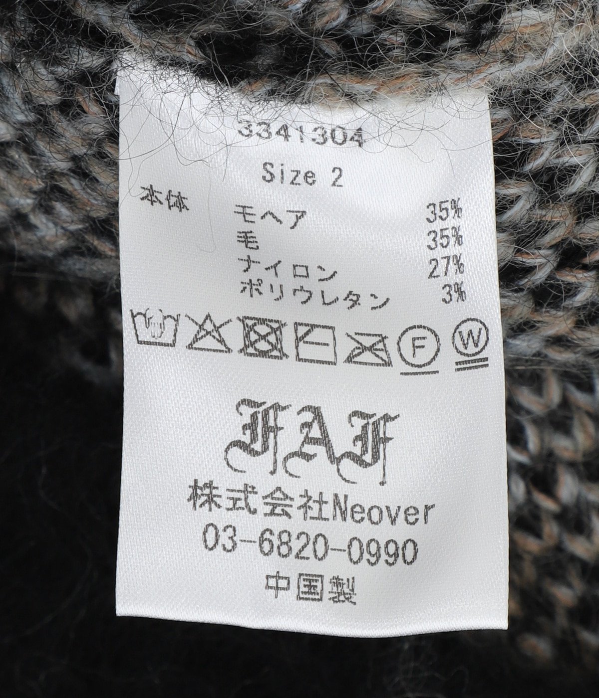本体:モヘア35%, ウール35%, ナイロン27%, ポリウレタン3%