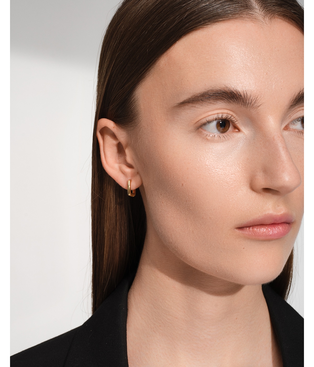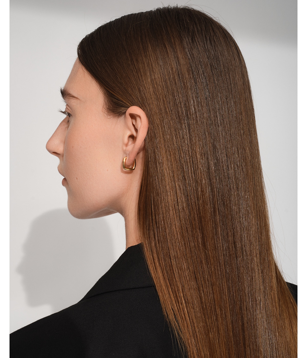 角シルエットが洗練されたモダンさを演出するスクエアフープピアス