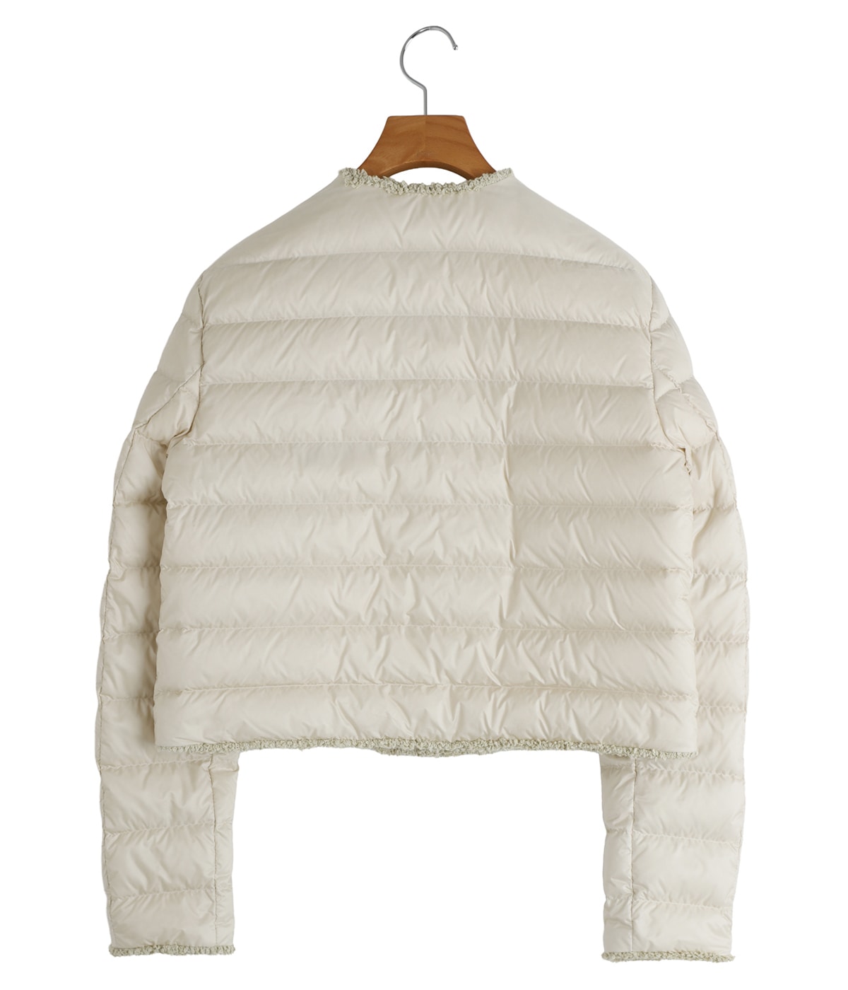 ・ラウンドネックラインにブークレ素材のトリムをあしらったクラシカルなデザイン