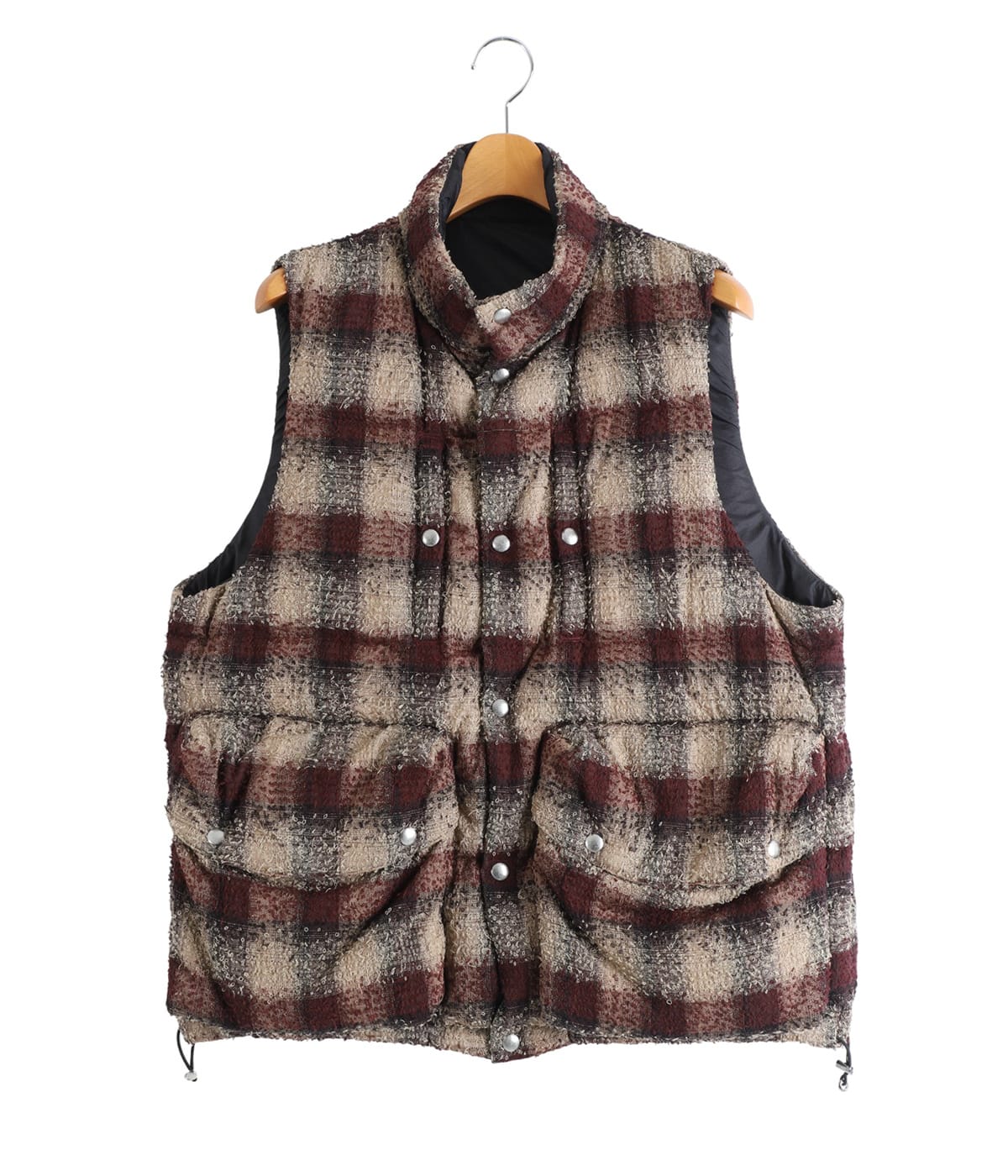 リバーシブルでチェック柄と無地を両面楽しめる保温性抜群のパッファーベスト