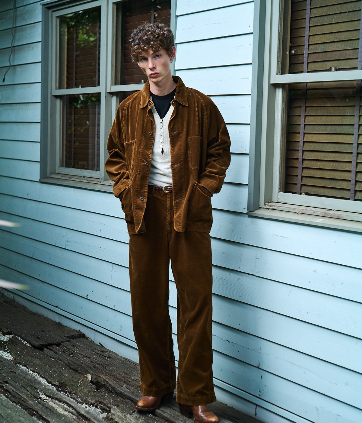 ・こちらのアイテムは「25B-GL15738 / 9W CORDUROY WORK COAT」と同生地になっており、セットアップでの着用も可能