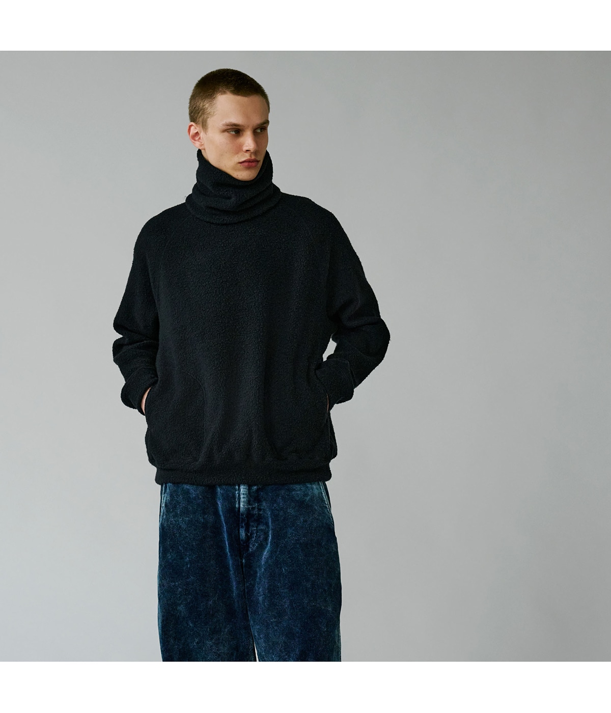 ・滑らかなウール繊維をフリース調に編み上げ、極限まで起毛させることにより、手触りの良さと保温性も兼備