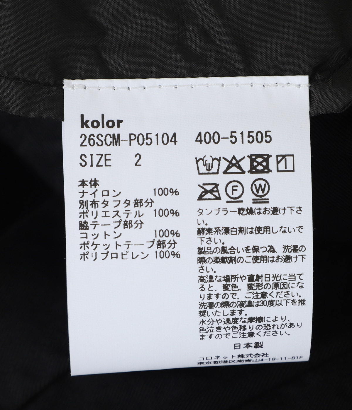 別布タフタ部分:ポリエステル100%