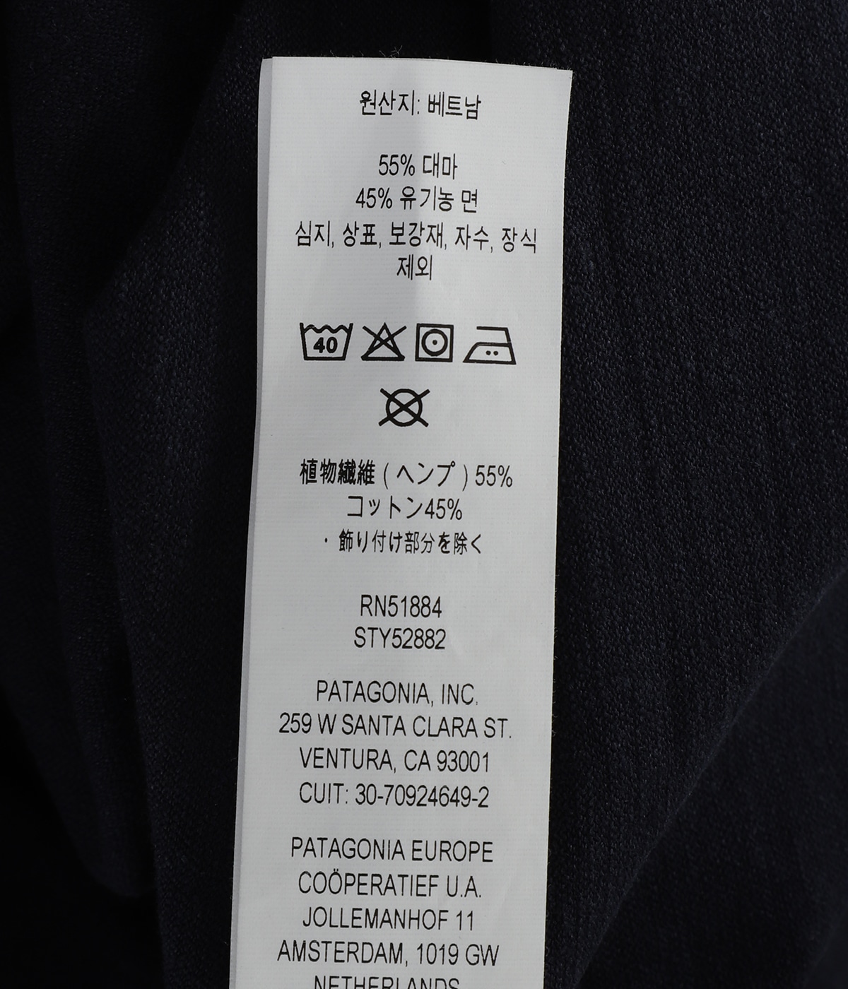 植物繊維(ヘンプ)55%, コットン45%