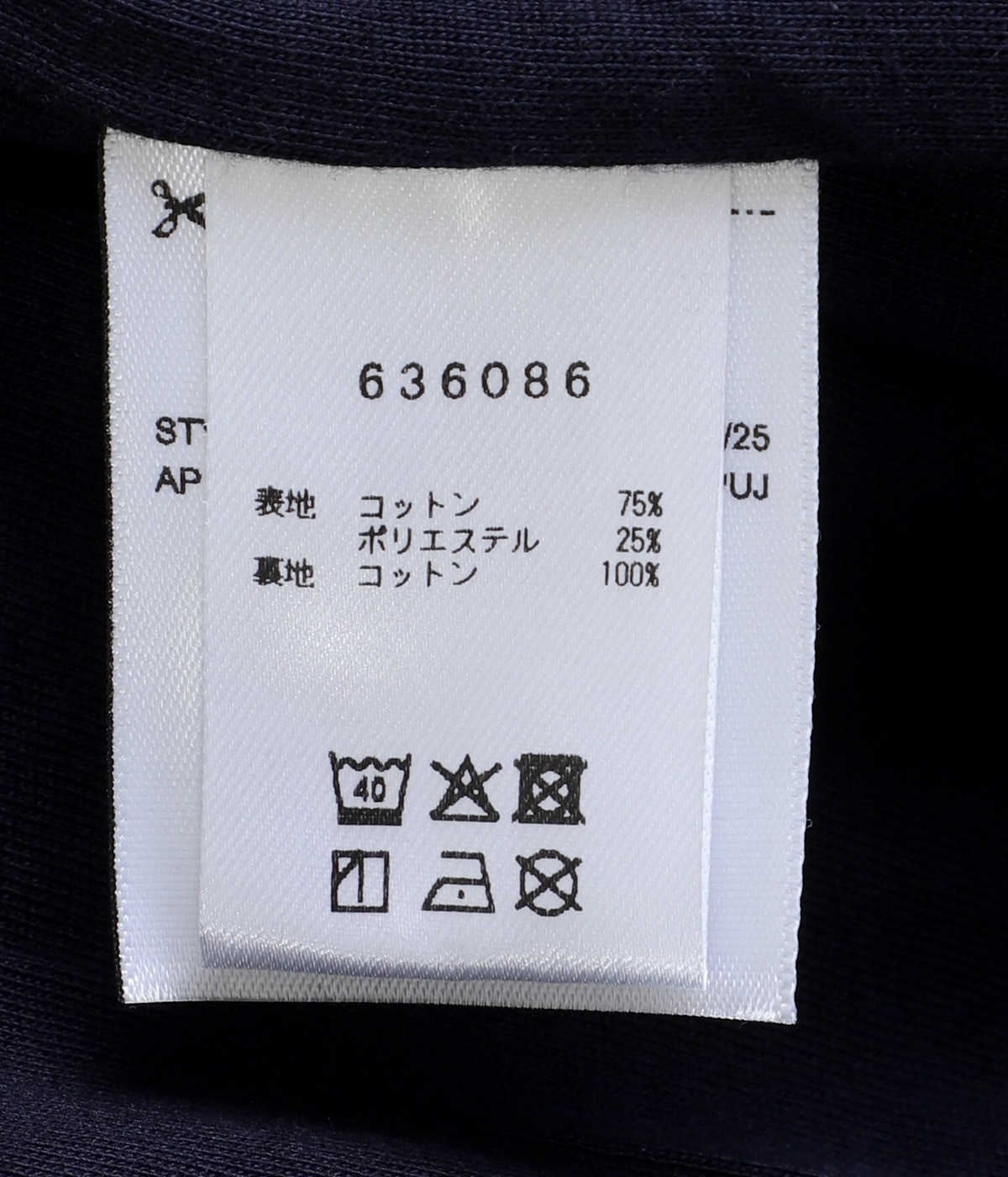 表地:コットン75%, ポリエステル25%