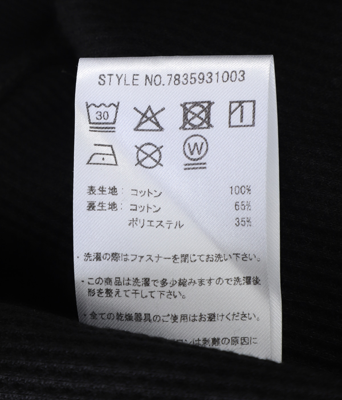 裏生地:コットン65%, ポリエステル35%