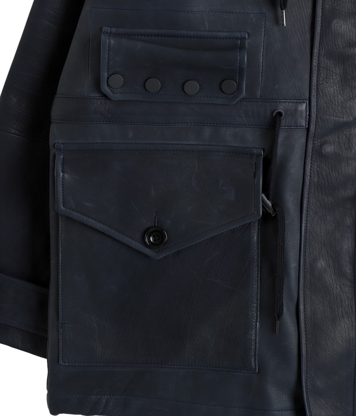 ・ファッション用途としては業界初となる革新的レザーを使用し、重厚さとタフさ、そしてラグジュアリーさを兼ね備えた仕上がり