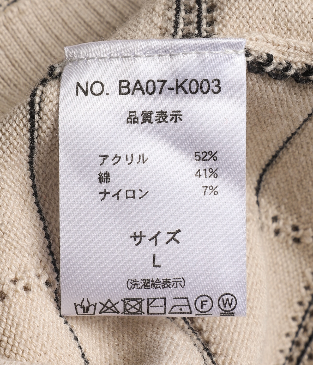 アクリル52%, コットン41%, ナイロン7%