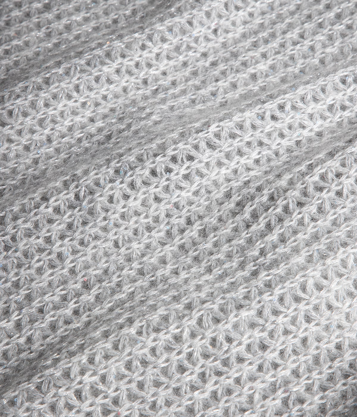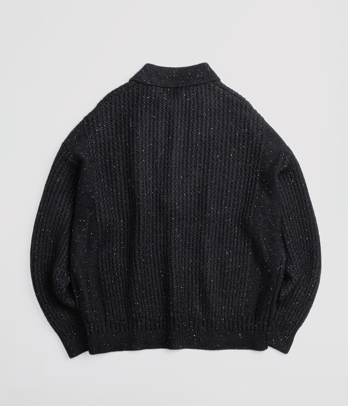 ・国内では稀少なモヘア×ウール混紡のスパンコール入り糸を採用し、素材の存在感を主役に
