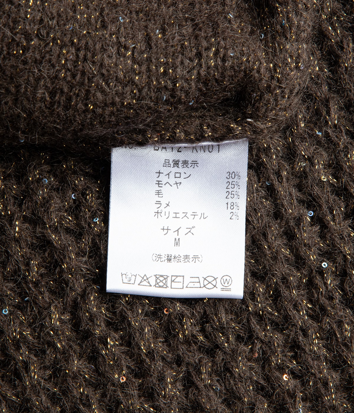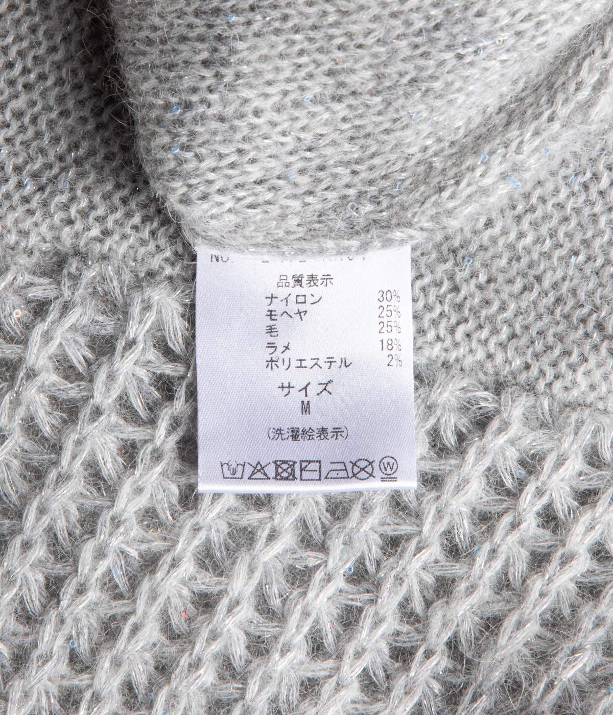 ナイロン30%, モヘヤ25%, ウール25%, ラメ18%, ポリエステル2%
