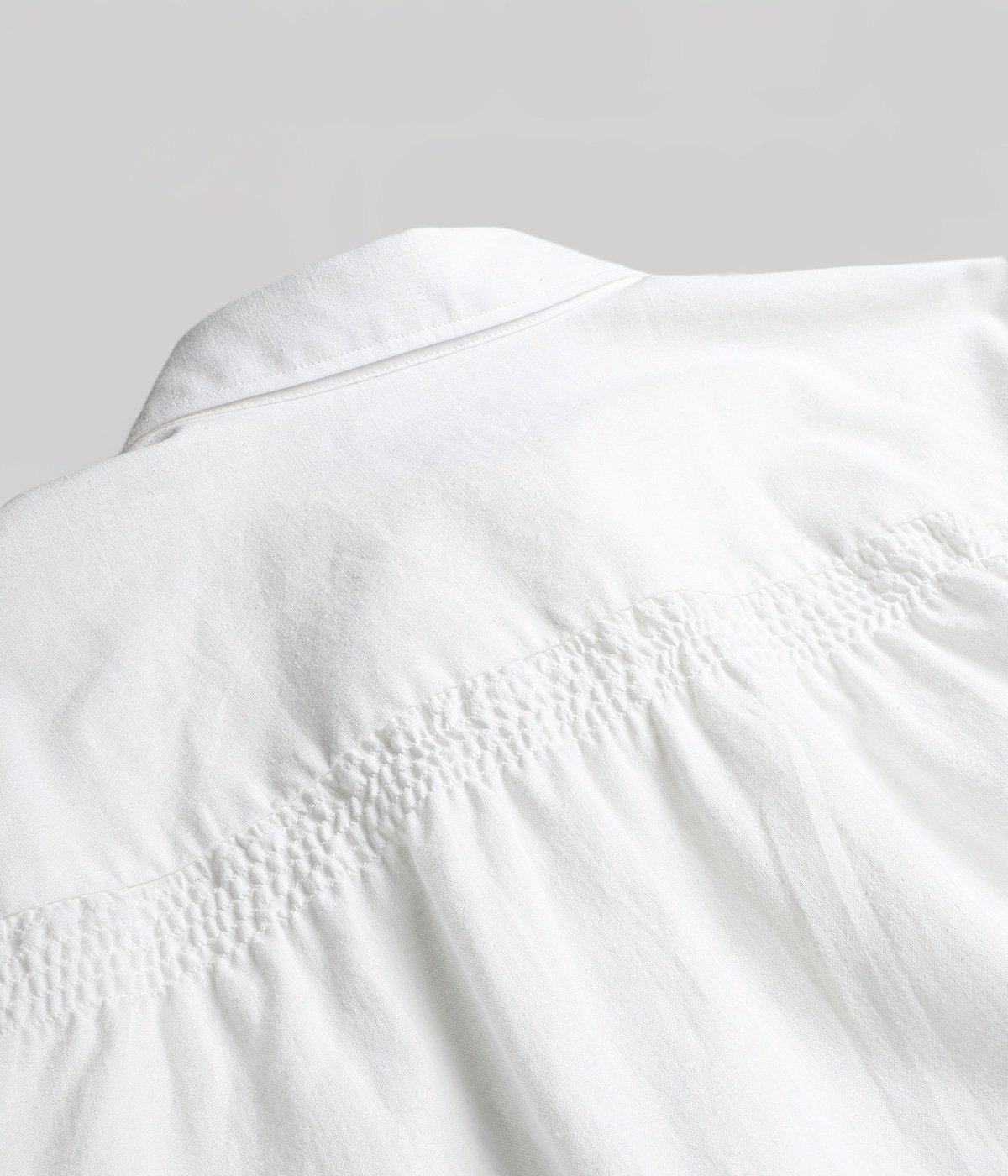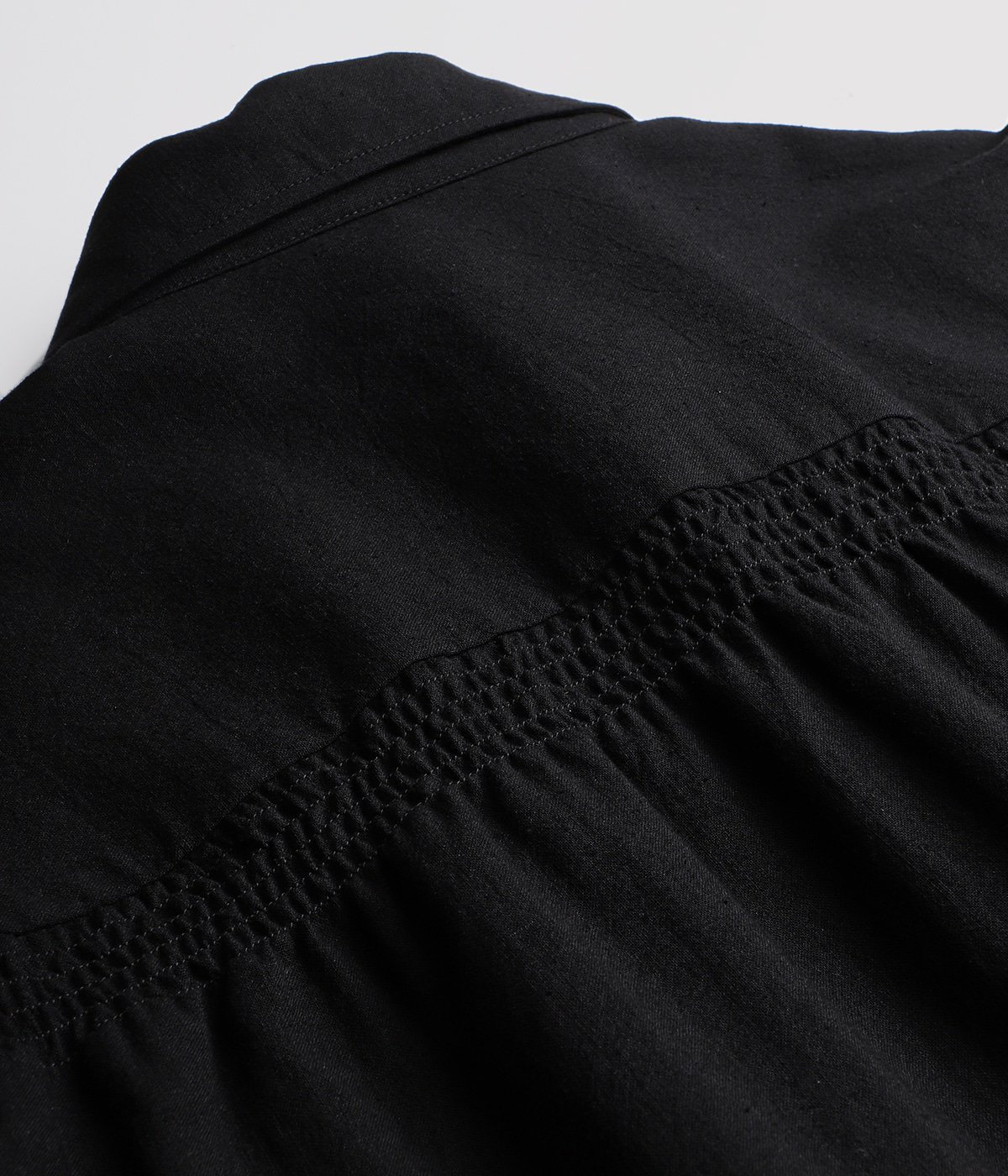 ・特徴的なシャーリングディテールを背中と袖口に配置することで、丸みと自然なふわっと感を演出
