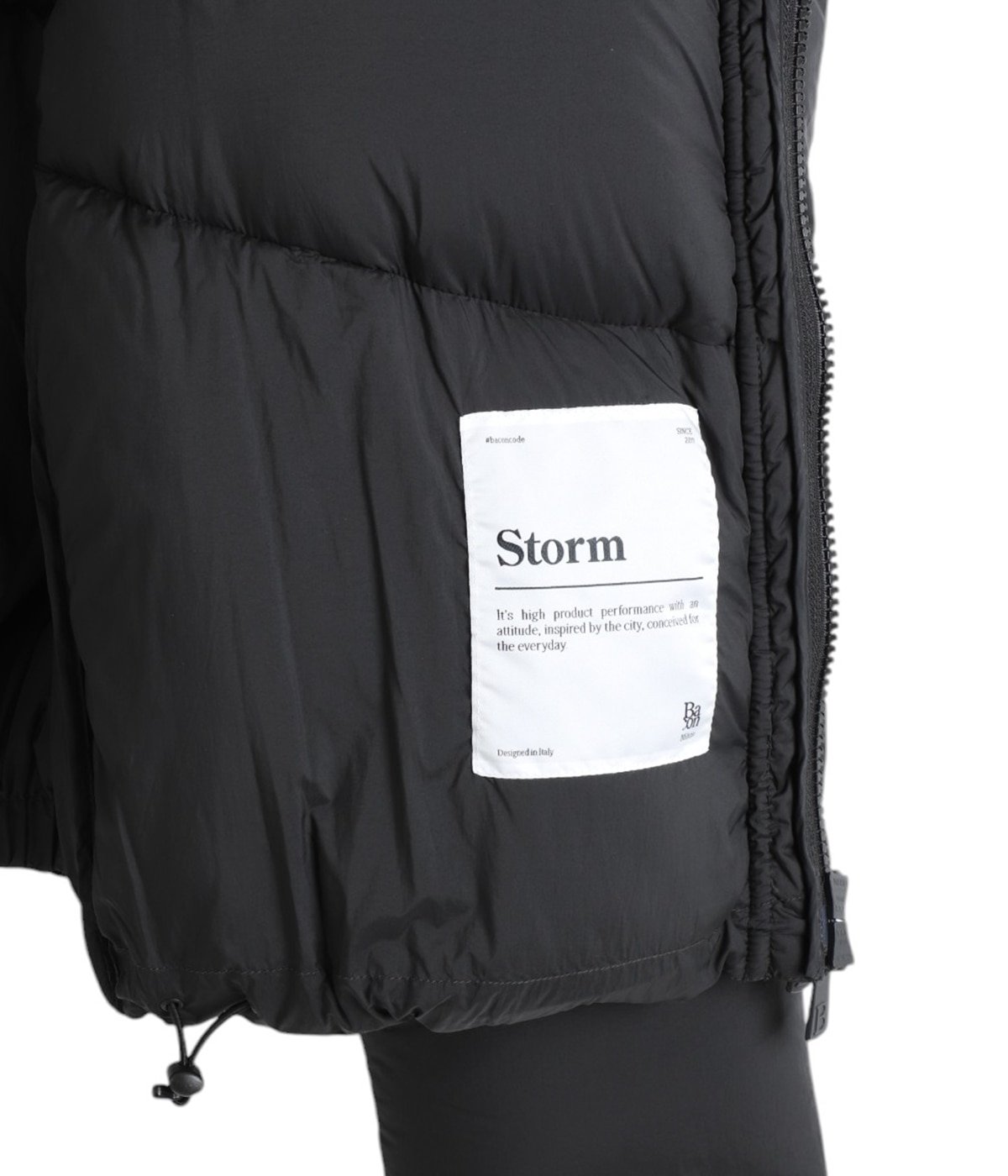 カジュアルにならず、どこかモード感のある雰囲気が漂うBACONのダウンジャケット