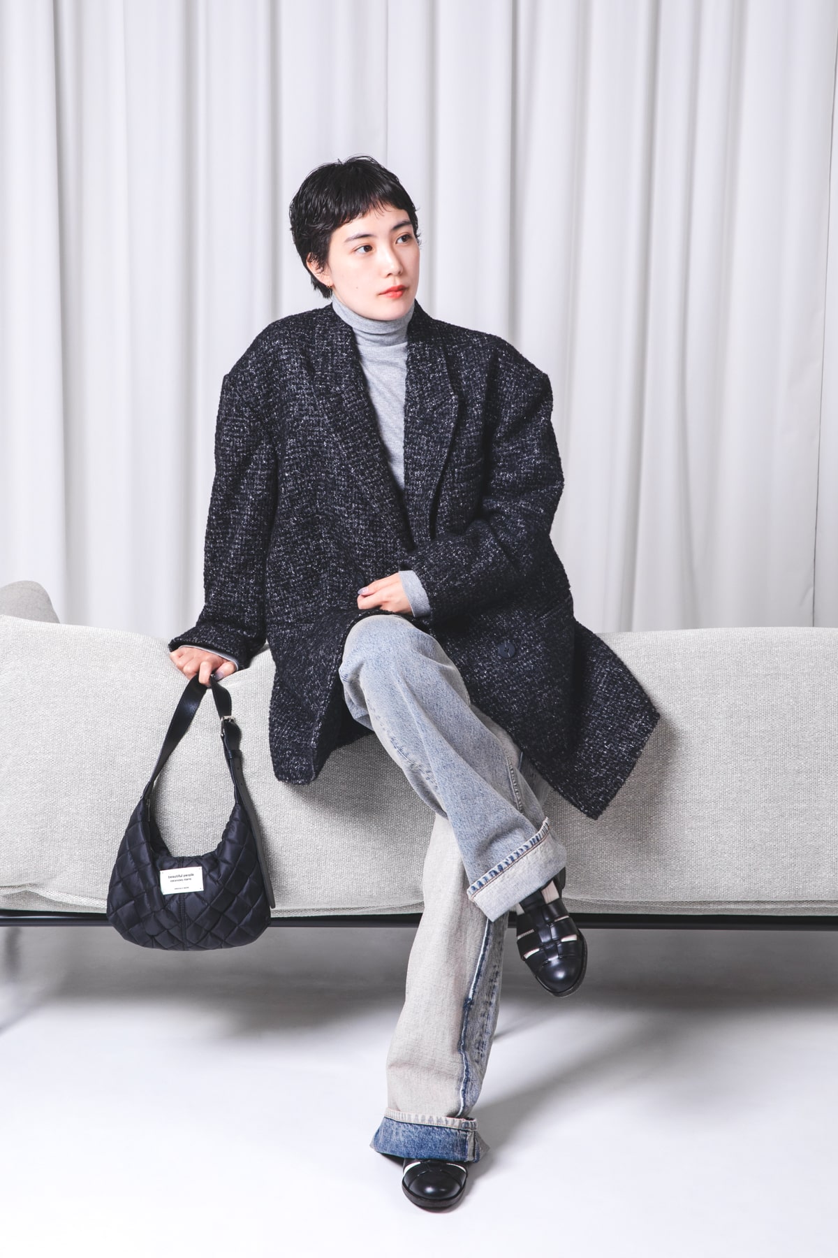 「オーバーサイズのジャケットをコート感覚で羽織って、メンズライクなスタイルを楽しみたい日もあれば、ゆったりとしたニットワンピースにトーンの異なるニットを重ねて、抜け感のあるリラクシーな雰囲気を纏いたい日もある。
