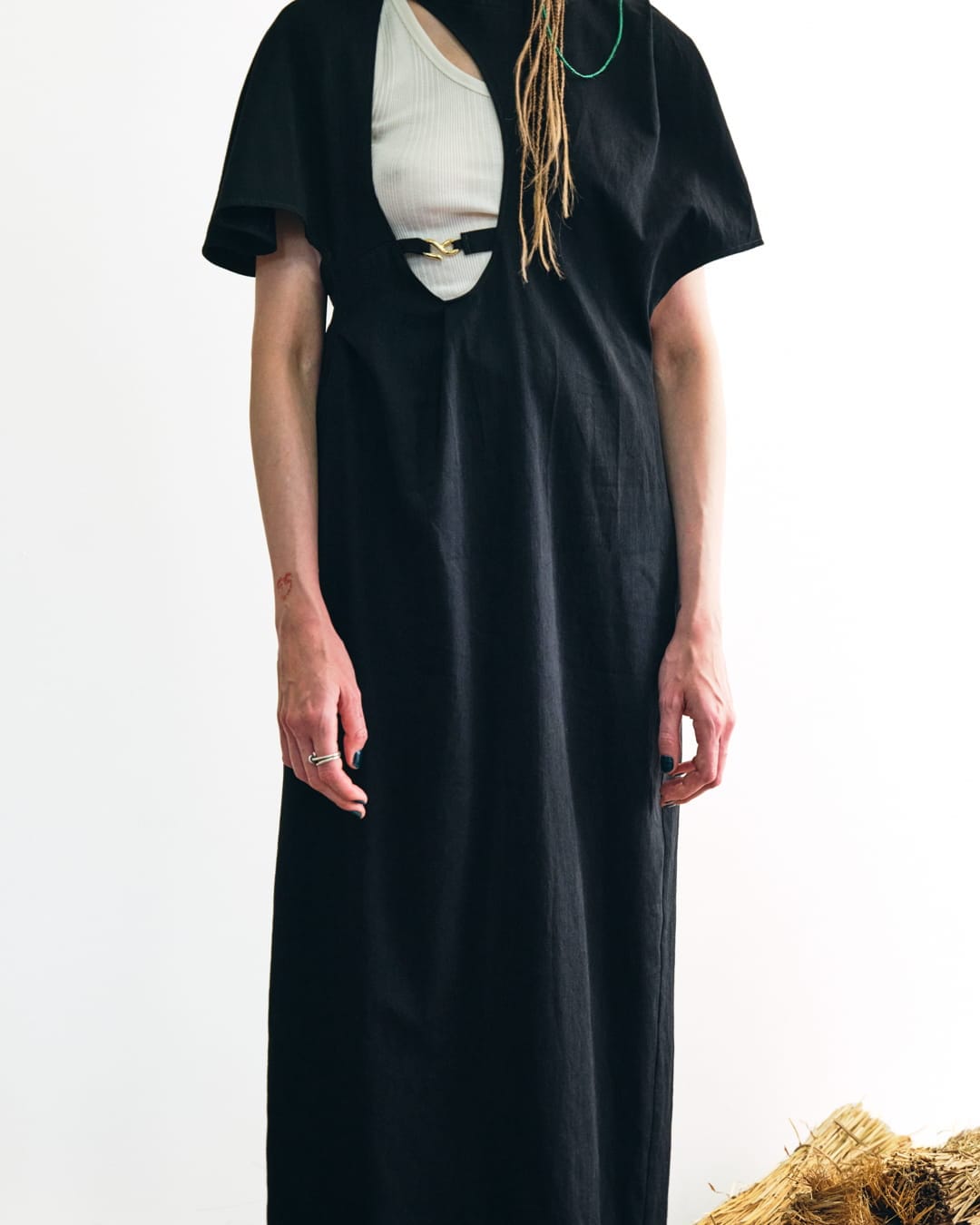 パリで出会ったしなやかで強い女性たちの姿勢への共感から、女性的なシルエットと強い佇まいを共存させた《 PHOTOCOPIEU(フォトコピュー)》のウェアは生まれた。表面的な飾りを潔く削る反面、手の温かみによって作られた切り替えのライン、有機的で女性の体が見え隠れするフォルムは、着るものにも見るものにも感情に熱を帯びさせる。日々の暮らしに溶け込みながらも印象的なシルエット、着心地を追求した日常着は、徐々にその人らしさを体現する生活に必要な道具となるだろう。